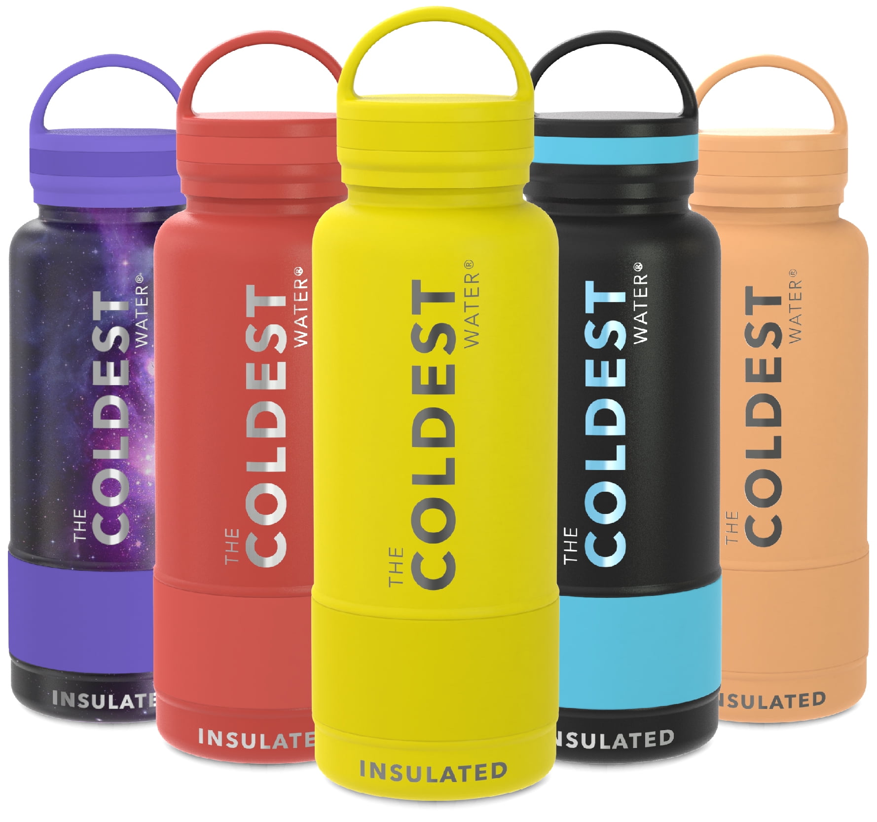 Coldest Sports Water Bottle Leak Proof Double Walled Stainless Steel Cold Hot Bottle Thermo Mug Solar Yellow 32 Oz Walmart Com